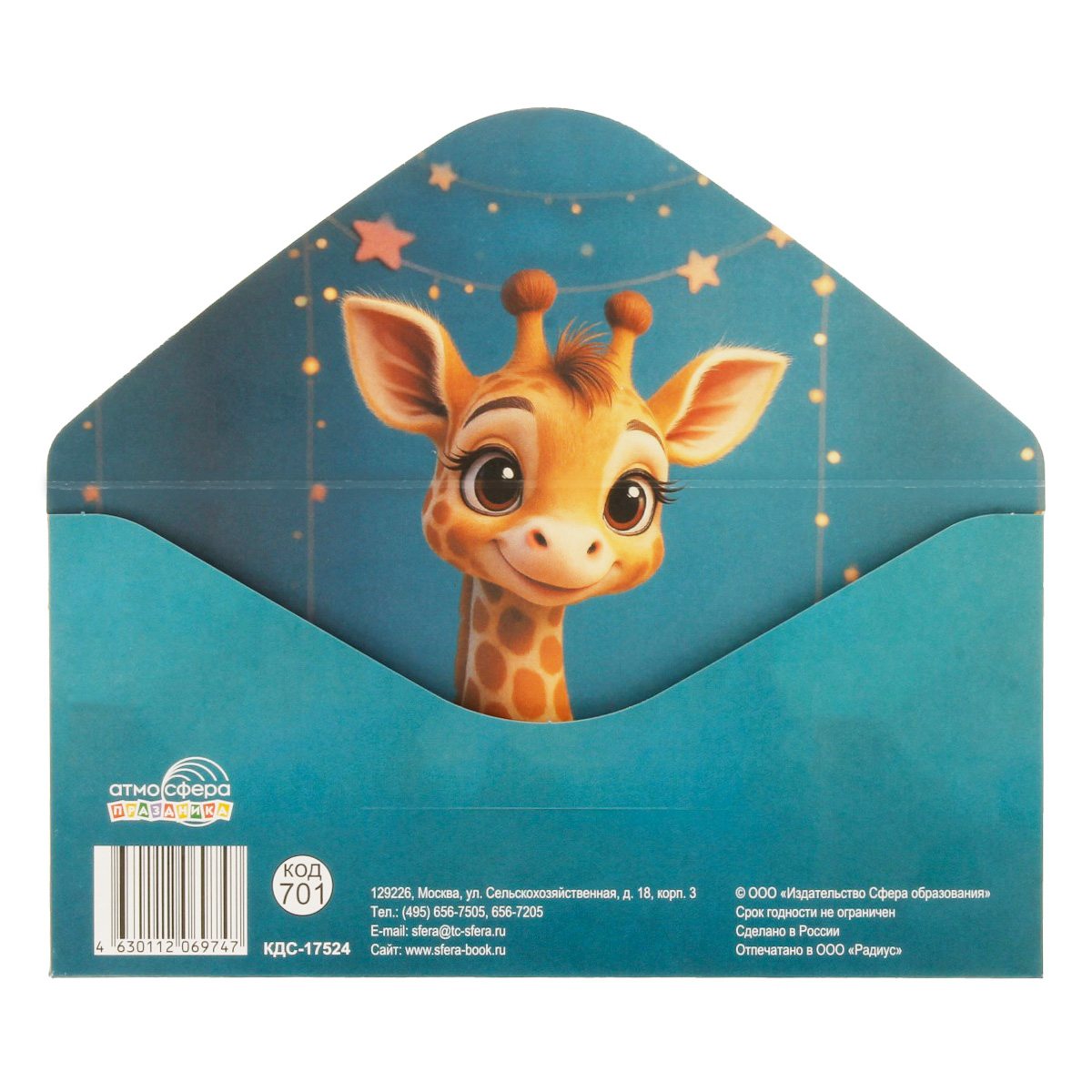 Открытка-конверт для денег с кратким пожеланием и украшенная отделкой из золотой фольги поможет красиво оформить подарок другу или подруге, коллеге или близкому человеку. Конверт выполнен из плотного картона, поэтому надолго сохранит свой нарядный внешний вид.