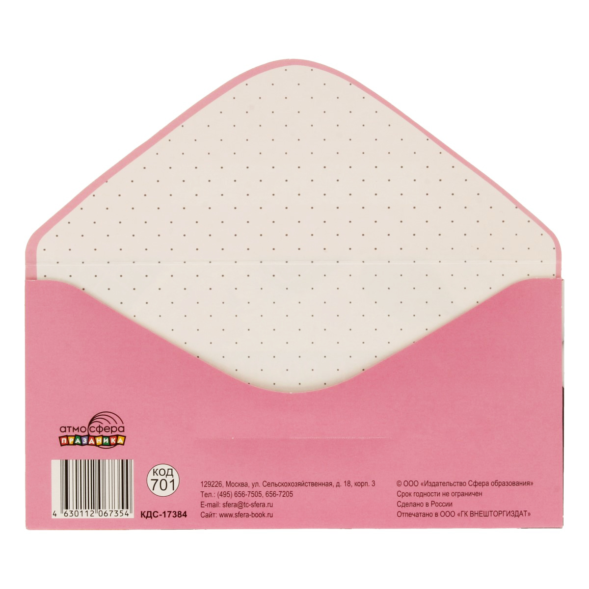 Открытка-конверт для денег с кратким пожеланием и украшенная отделкой из золотой фольги поможет красиво оформить подарок другу или подруге, коллеге или близкому человеку. Конверт выполнен из плотного картона, поэтому надолго сохранит свой нарядный внешний вид.