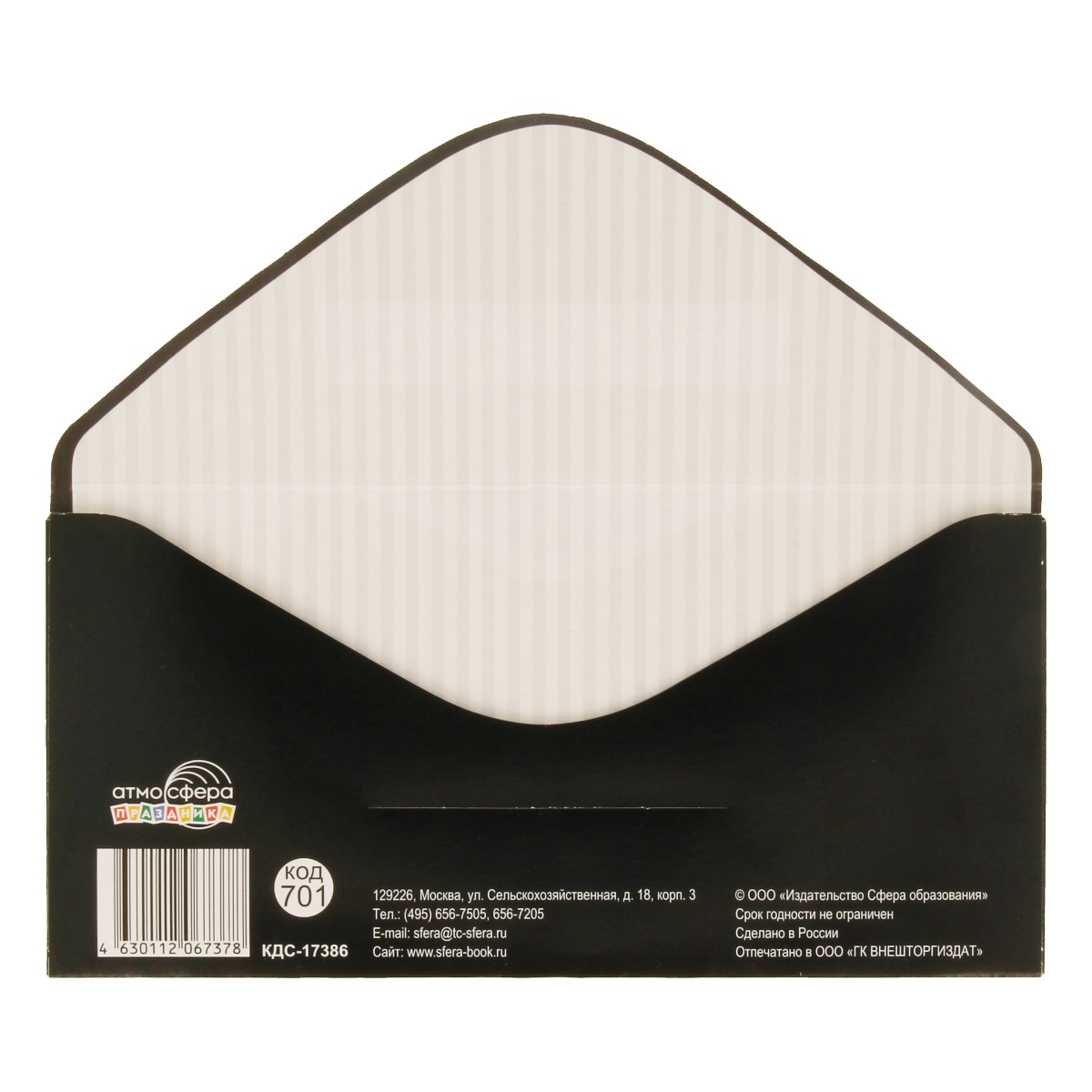 Открытка-конверт для денег с кратким пожеланием и украшенная отделкой из золотой фольги поможет красиво оформить подарок другу или подруге, коллеге или близкому человеку. Конверт выполнен из плотного картона, поэтому надолго сохранит свой нарядный внешний вид.