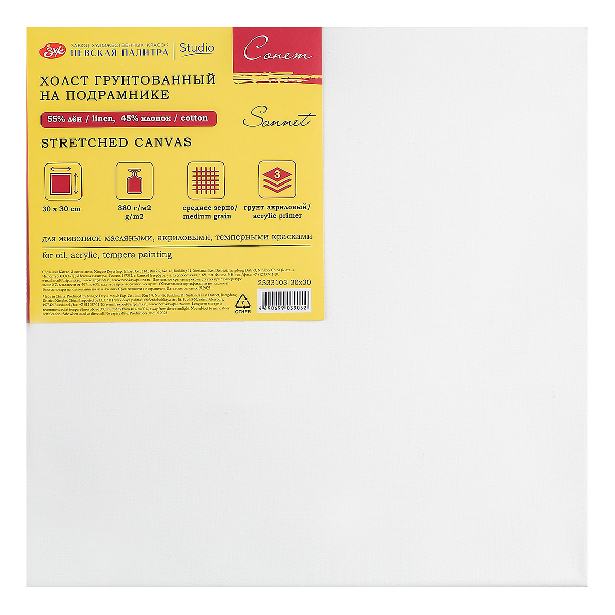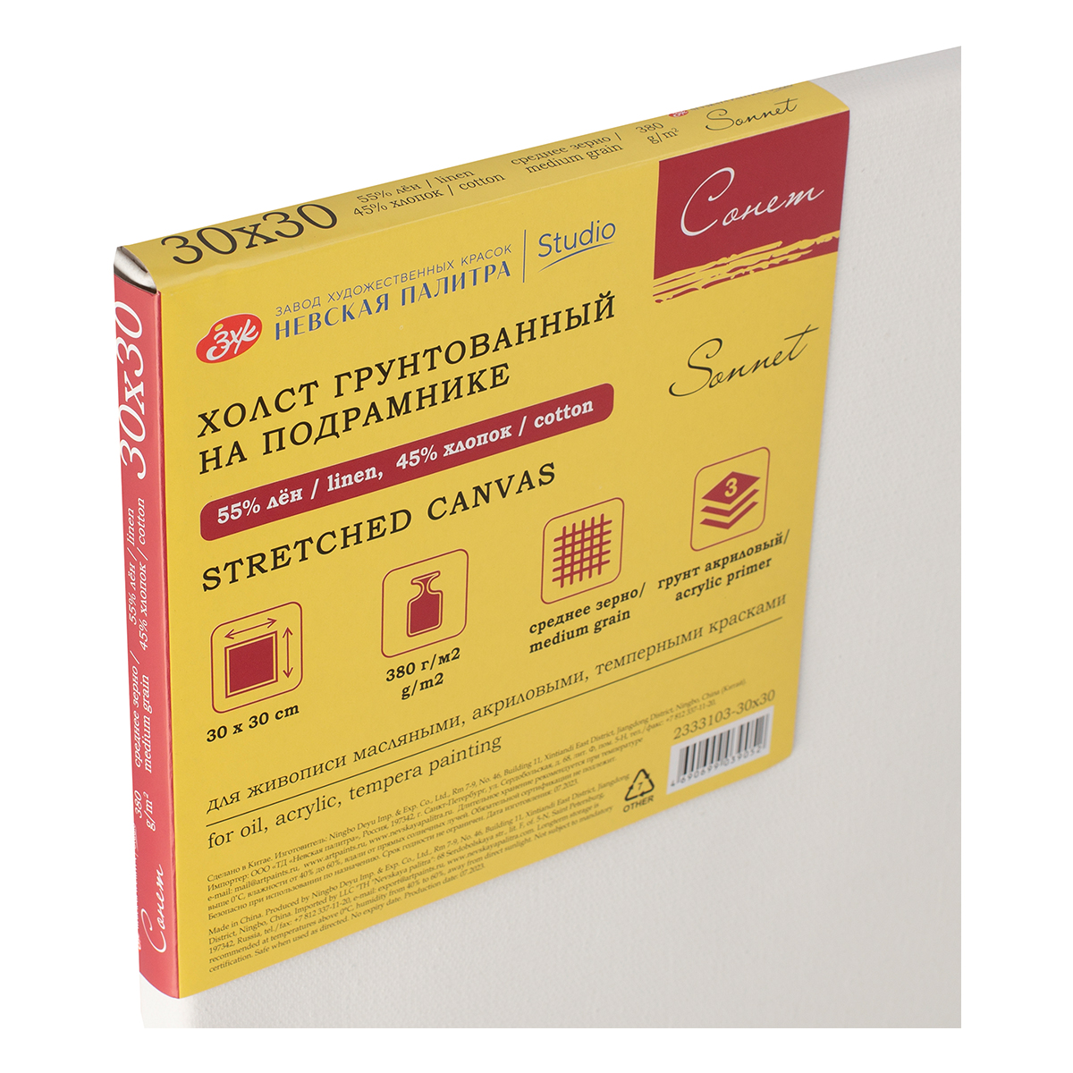 Холст грунтованный на подрамнике "Сонет" 55% хлопок, 45% лён 30 х 30 см 380 г/кв.м 2333103-30х30 среднезернистый