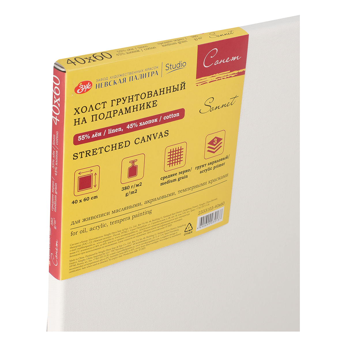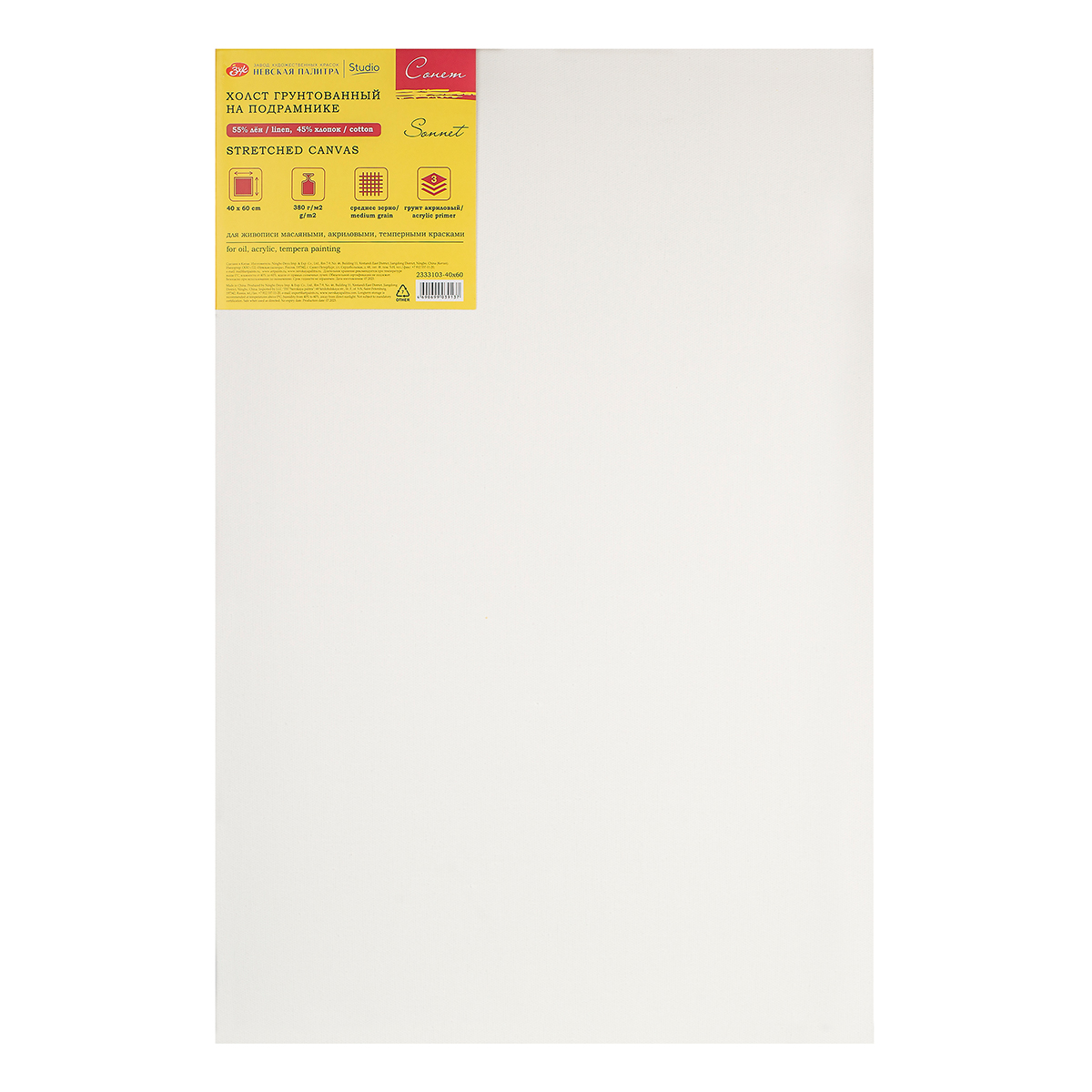 Холст грунтованный на подрамнике "Сонет" 55% хлопок, 45% лён 40 х 60 см 380 г/кв.м 2333103-40х60 среднезернистый