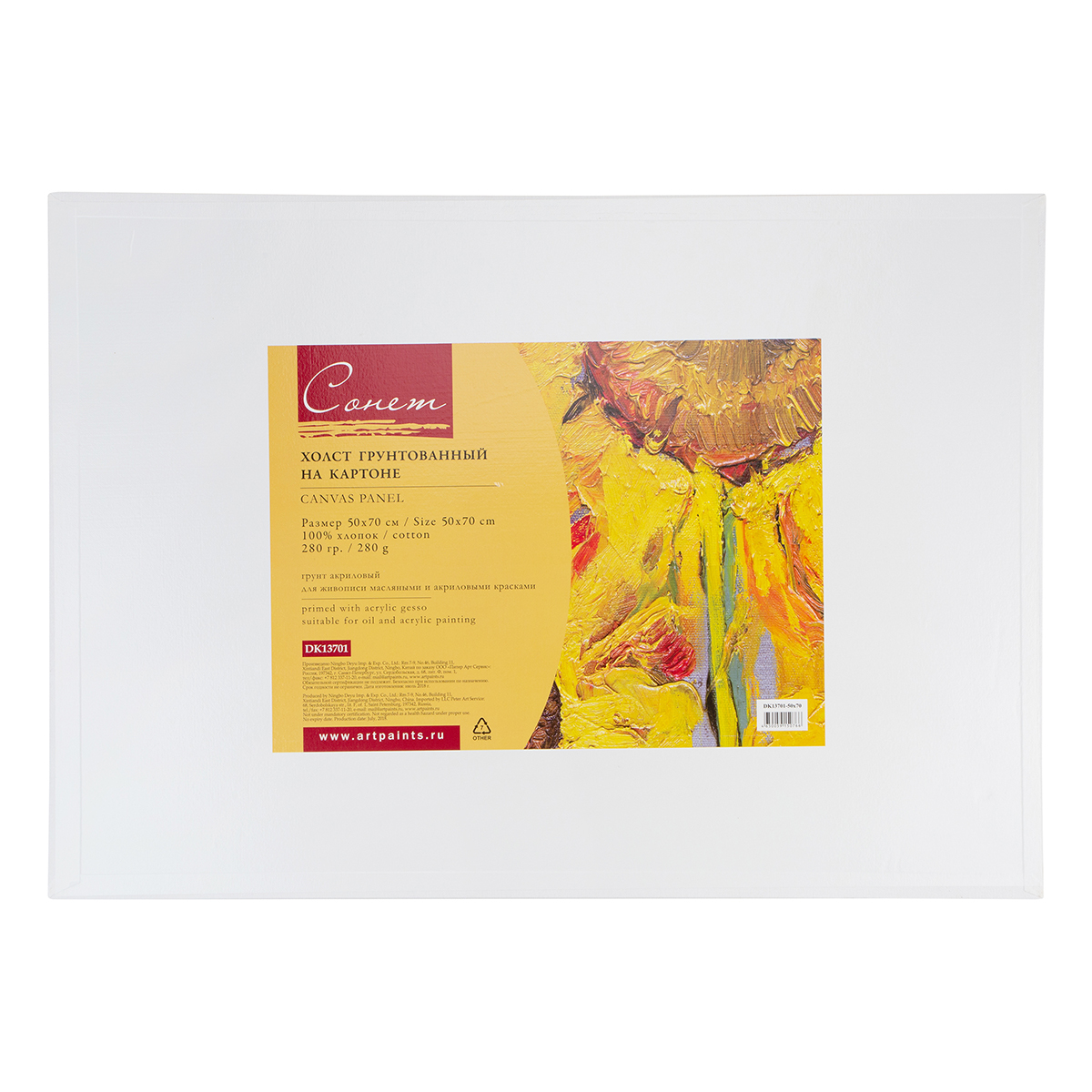 Холст грунтованный на картоне Сонет 100% хлопок 50 х 70 см 280 г/кв.м DK13701-50x70 мелкозернистый Фото 1.