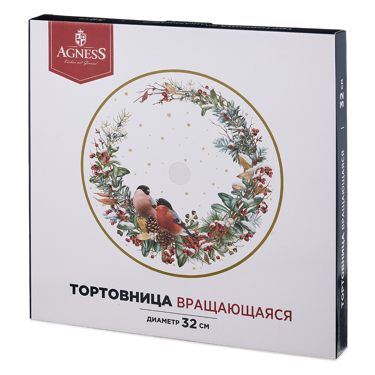 Посуда стеклянная "Agness" "Снегири" Тортовница вращающаяся d 32 см 357-259