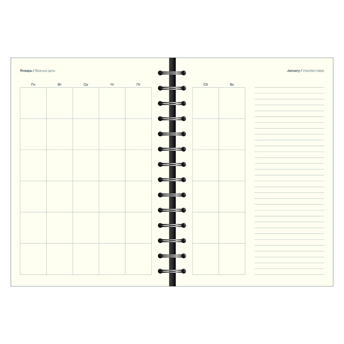 Обложка - мягкая, полускрытая спираль, гладкая искусственная кожа с печатью по материалу и шелкографией, скругленные уголки, цвет - три цветка. Блок - клетка, 192 стр., бумага: слоновая кость, прямые уголки, 70 г/м2, печать 1+1. Особенности: клапан на кнопке.