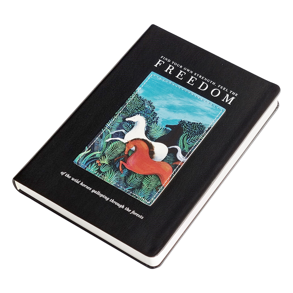 Обложка - интегральная, гладкая искусственная кожа с печатью шелкографией, скругленные уголки, цвет - черный. Блок - датированный, 352 стр., кармашек, 2 ляссе, бумага: слоновая кость, скругленные уголки, 70 г/м2, печать 1+1. Особенности: нашивка.
