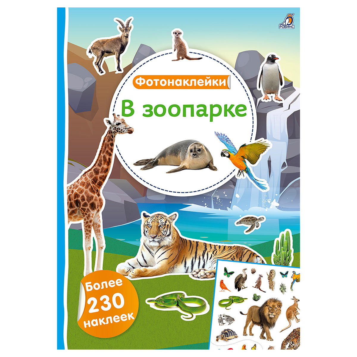 В ней более 230 фотонаклеек с реалистичными изображениями животных, которые живут в зоопарке: обезьяны, тигры, жирафы, тюлени, пингвины, попугаи, рыбы и т.п.