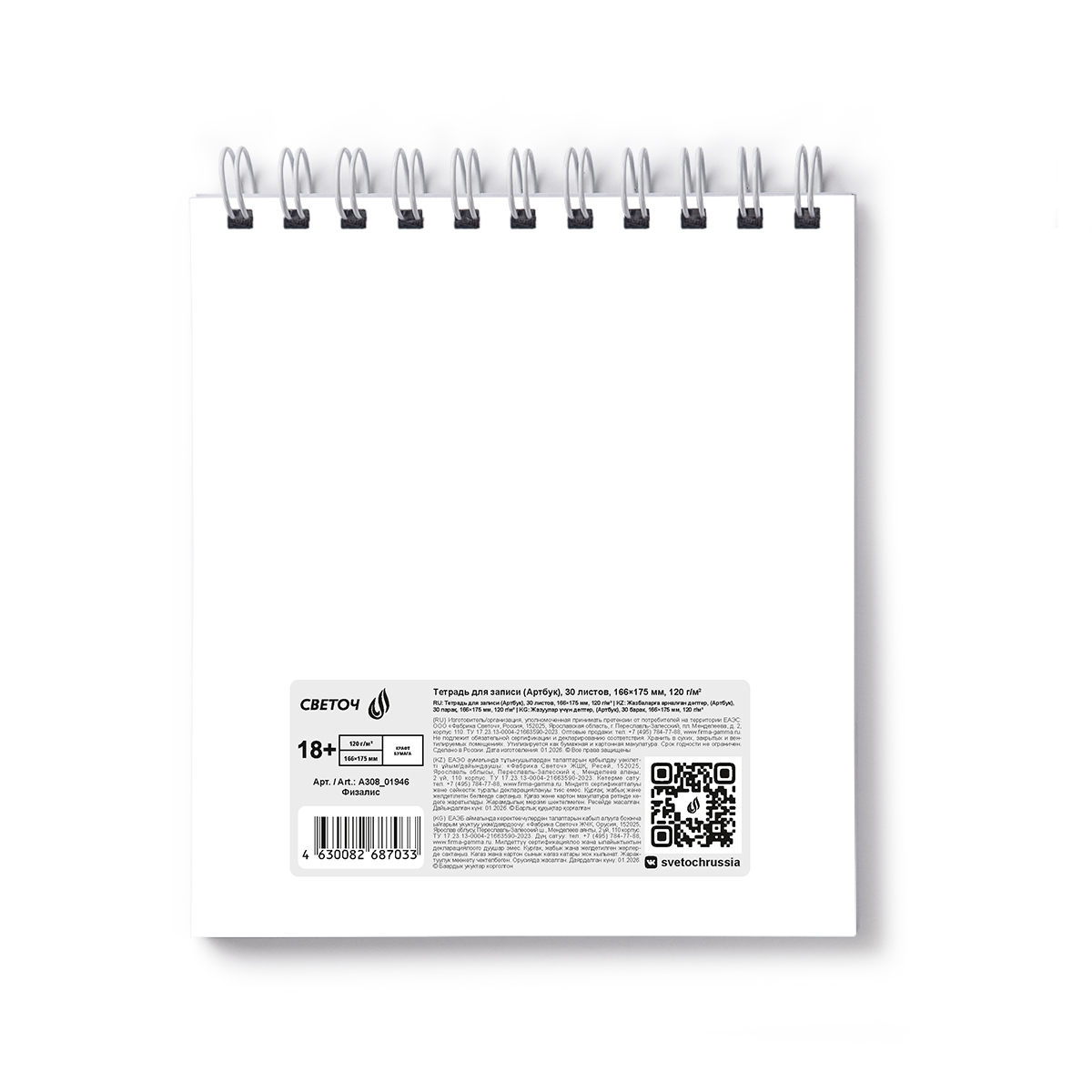 Светоч А308 Артбук (Скетчбук), блок крафт - бумага, жесткая подложка, 120 г/м2 166*175 мм на гребне 30 л. Физалис 01946 Фото 3.