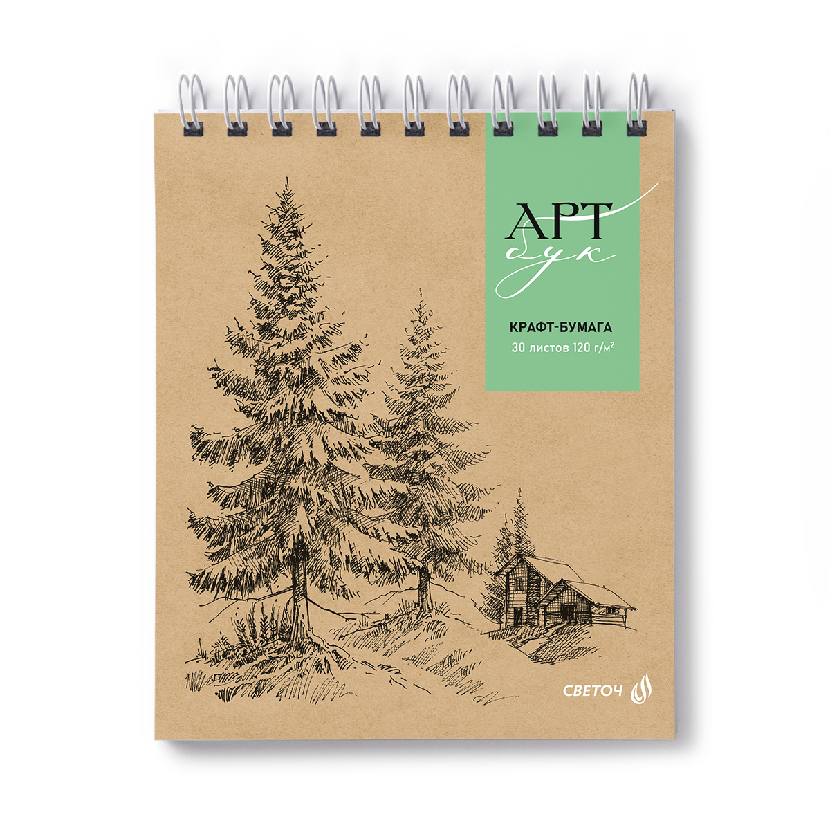 "Светоч" А309 Артбук (Скетчбук), блок крафт - бумага, жесткая подложка, 120 г/м2 175*200 мм на гребне 30 л. Лес 01950