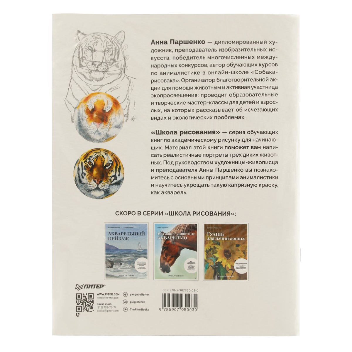 «Школа рисования» — серия обучающих книг по академическому рисунку для начинающих. Материал этой книги поможет вам написать реалистичные портреты трех диких животных. Под руководством художницы-живописца и преподавателя Анны Паршенко вы познакомитесь с основными принципами анималистики и научитесь укрощать такую капризную краску, как акварель.