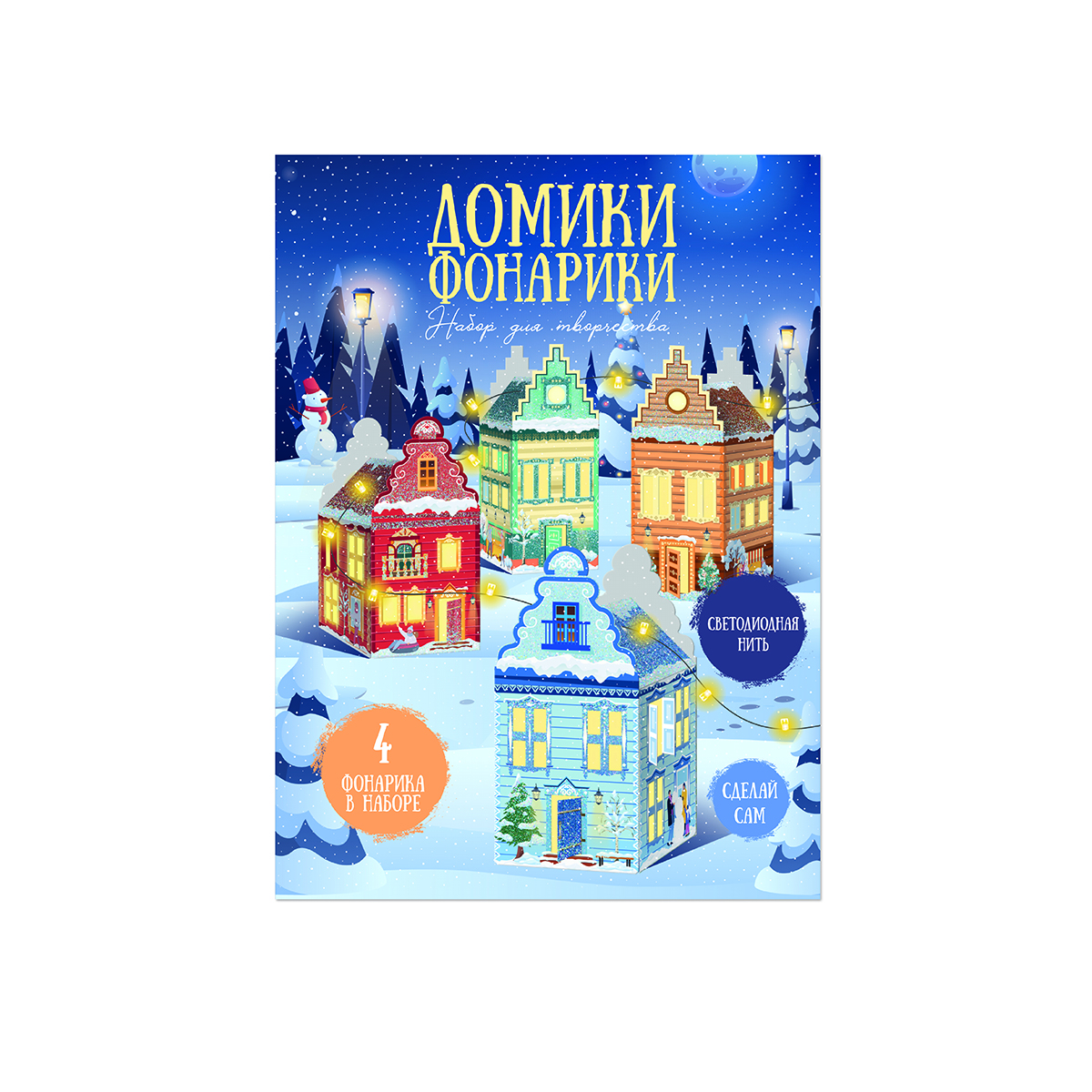 Творческий набор 3D гирлянда "Домики-фонарики", созданная своими руками, привнесёт в ваш интерьер атмосферу зимнего уюта и волшебства! Процесс её создания простой и увлекательный. Гирлянда состоит из четырёх домиков и светодиодной нити с тремя режимами свечения .