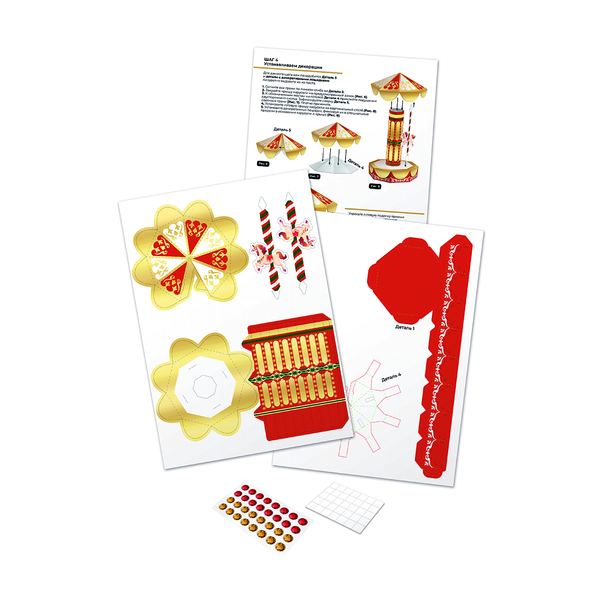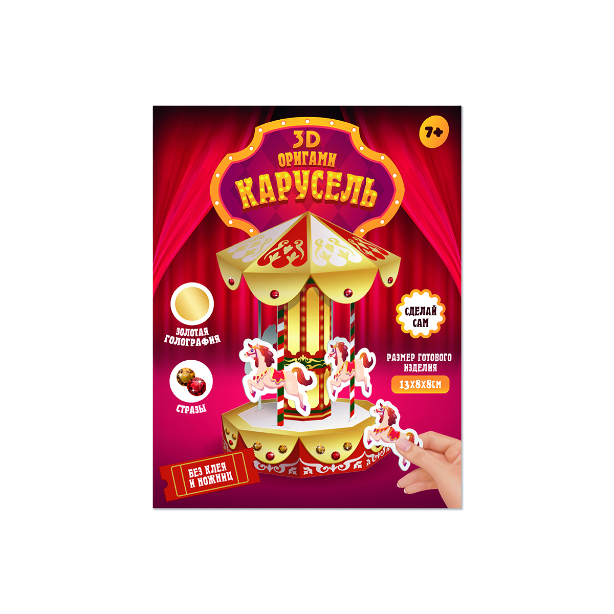Набор для творчества 3D Оригами "Карусель" - это возможность своими руками создать оригинальное интерьерное украшение. Готовая поделка, благодаря детальной проработки дизайна, включения голографических элементов, выглядит совсем как настоящий детский, всеми любимый аттракцион!