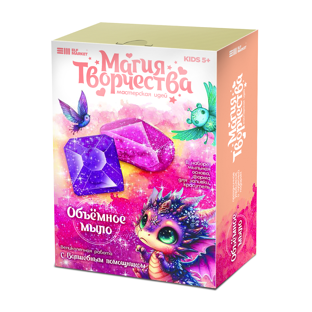 Объёмное мыло - кристаллы "Александрит и Рубин", ElfMarket, 401201. Завораживающий процесс мыловарения - отличный контент для ваших соц.сетей! Краситель с блестками красиво расплывается в мыльной основе, образуя космические узоры, а итоговый продукт получается аккуратным и великолепно выглядит. В набор входит: мыльная основа, формочки для мыла, красители синтетические с блестками, пластиковый стек, инструкция с волшебным помощником.