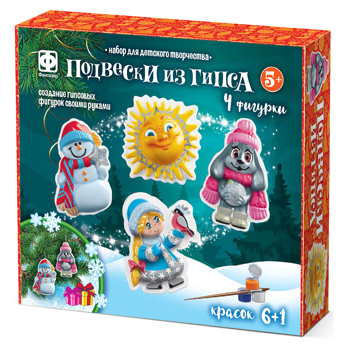 Подвески из гипса Новый год 4 шт Набор №1, Фантазёр, 707719. Этот набор для создания самых необычных елочных украшений. Создайте вместе с ребенком игрушки, которые каждый новый год будут дарить тёплые воспоминания и радость. 4 фигурки. В набор входит: гипс, формы для отливки, бусины, краски, кисть, миска, пластиковый стек, шнур.