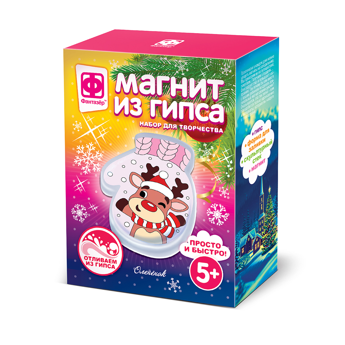 Магнит из гипса Варежка Олененок, Фантазёр, 707194. Даже холодильник может стать новогодним украшением, если повесить на него новогодние магнитики, такие как Варежка. Быстро, легко и интересно. В набор входит: гипс, форма для заливки, магнитный лист.