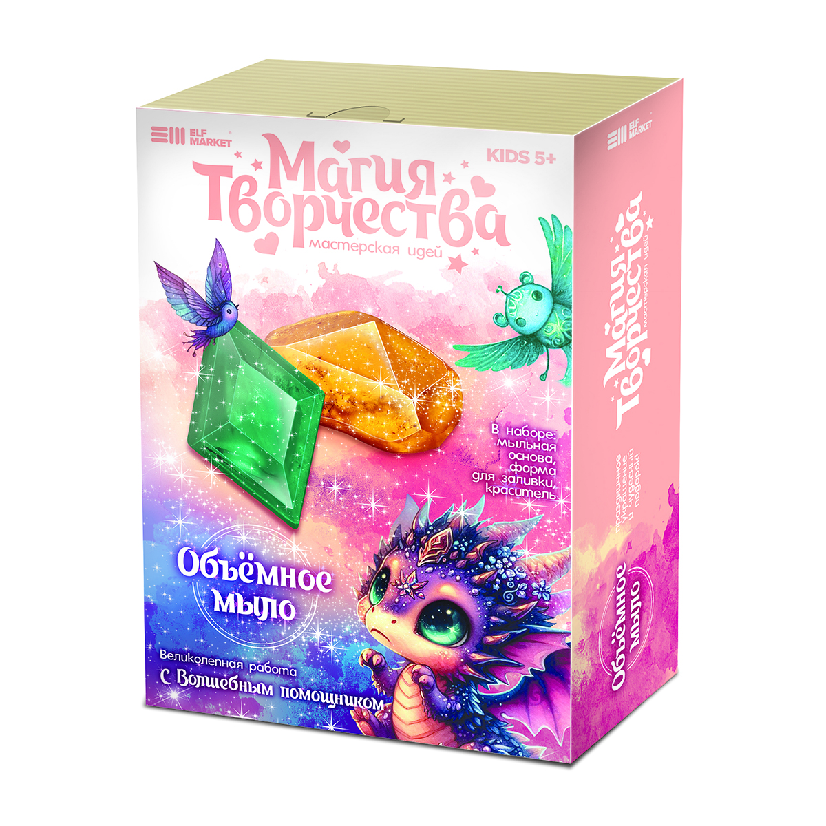 Объёмное мыло - кристаллы "Изумруд и Золото", ElfMarket, 401202. Завораживающий процесс мыловарения - отличный контент для ваших соц.сетей! Краситель с блестками красиво расплывается в мыльной основе, образуя космические узоры, а итоговый продукт получается аккуратным и великолепно выглядит. В набор входит: мыльная основа, формочки для мыла, красители синтетические с блестками, пластиковый стек, инструкция с волшебным помощником.