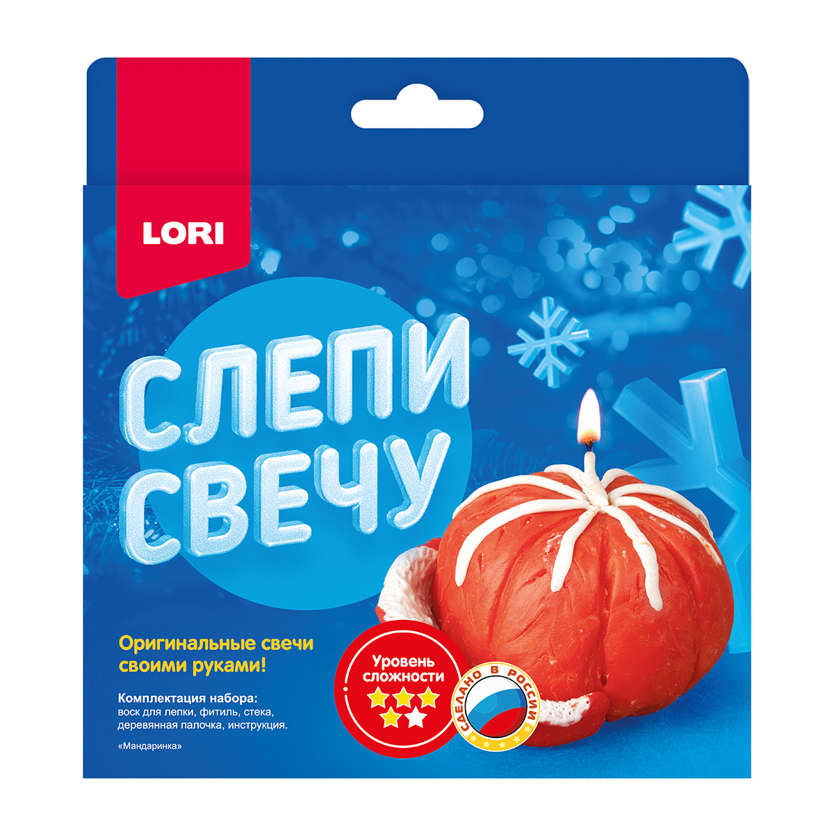 Комплектация: воск для лепки свечей, фитиль, стек, инструкция
