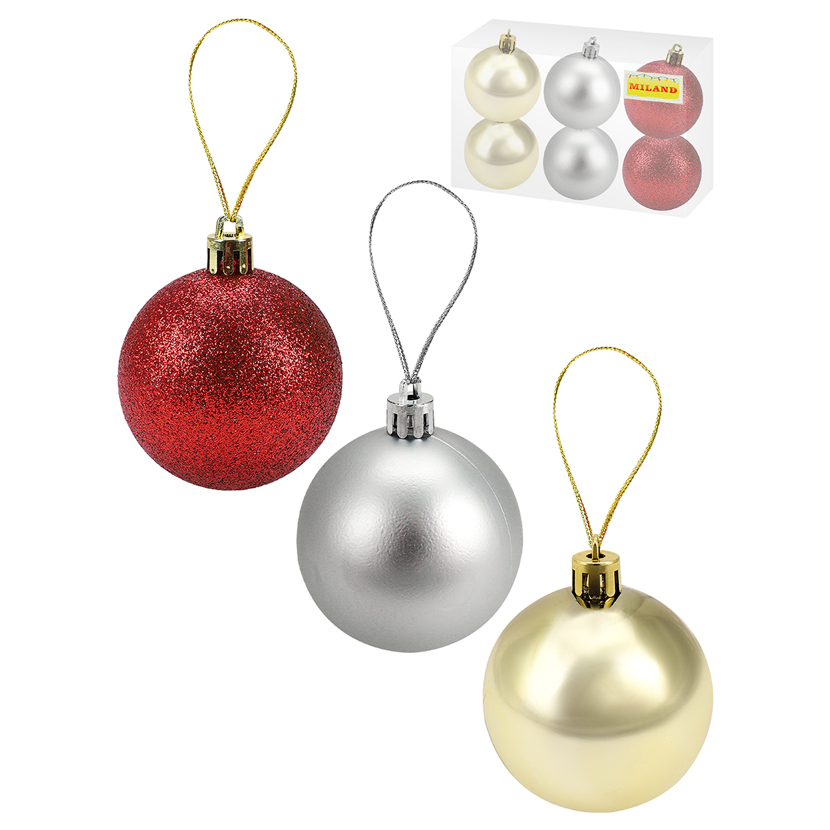 Шар — незаменимое ёлочное украшение, которое поможет создать невероятно уютную атмосферу Нового Года! Набор ёлочных шаров в едином стиле прекрасно подойдёт для декора ёлки или других элементов интерьера. Шары прослужат вам долгие годы, так как сделаны из прочного пластика. Вам не придётся беспокоиться, что дети или животные их разобьют! Размер: 6 см. В наборе 6 шт. Цвет: красный, золотой, серебряный.