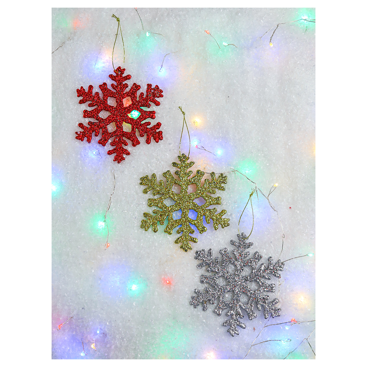 MILAND Набор ёлочных подвесок Искрящиеся снежинки D. 10.5 см 3 шт. НУ-8318 Фото 2.