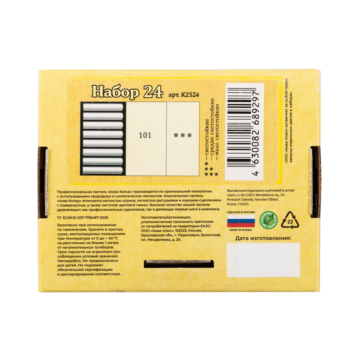 В составе художественной пастели "Аква-Колор" нет масла, воска, глины – только светостойкие пигменты, гуммиарабик и некоторые специальные добавки. Тонкий круглый мелок позволяет создавать четкие штрихи и выполнять крупные заливки. Пастель универсальны в применении, хорошо ложится на различные поверхности, не осыпается.