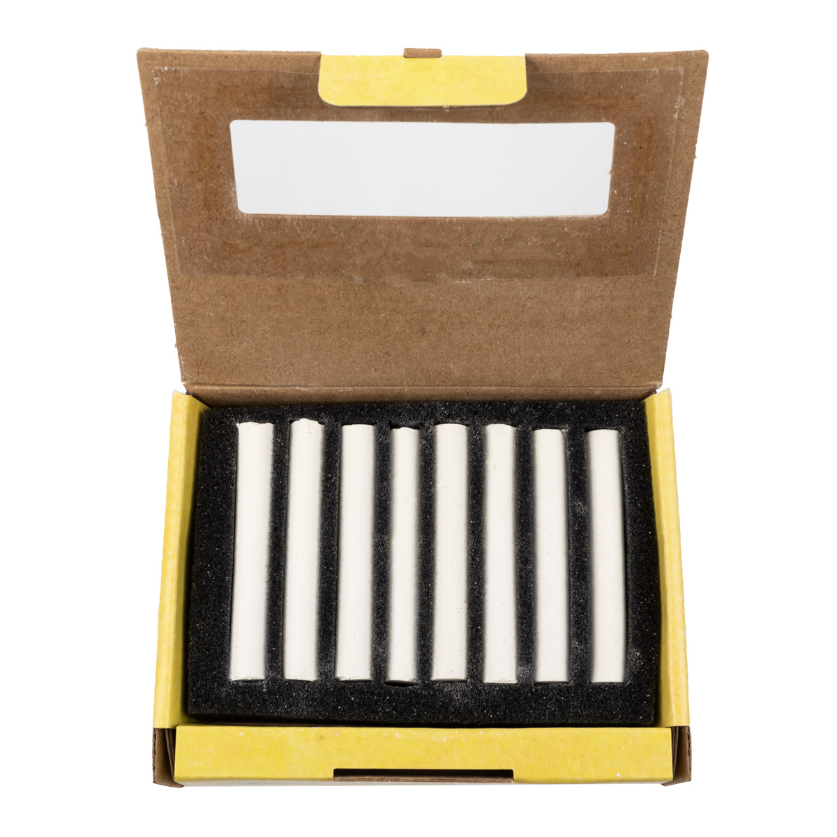 Помимо всего прочего, она незаменима в финальной прорисовке бликов и самых светлых мест, которая придаёт рисунку глубину и объём. Поэтому белая пастель должна быть яркой, плотной и укрывистой, чтобы базовый слой смотрелся красиво, а финальный — не «проваливался». Именно такую, в наборах по восемь мелков, мы представляем Вашему вниманию.