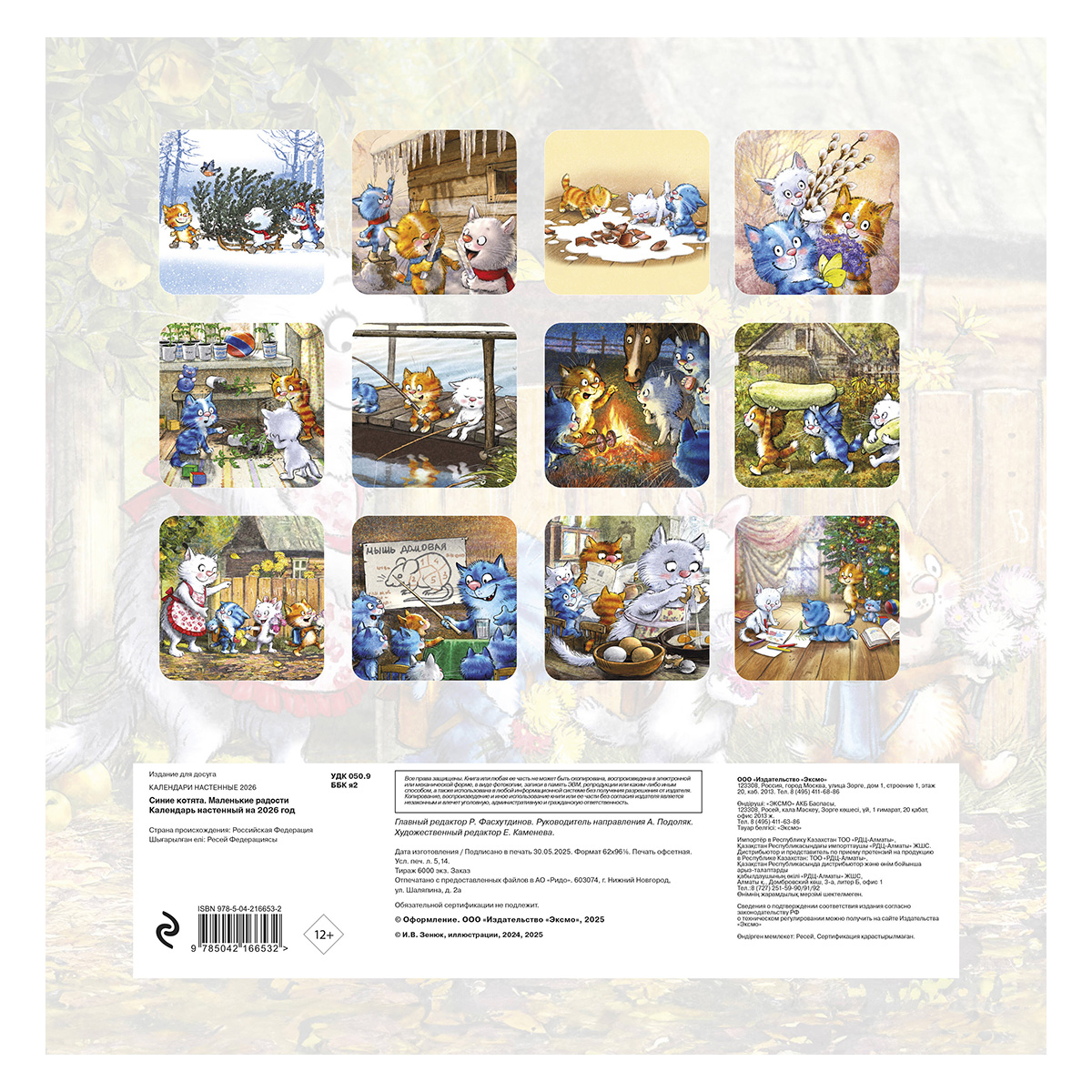 "ЭКСМО" Календарь настенный 2026 год 300х300 мм "Синие котята. Маленькие радости" 978-5-04-216653-2