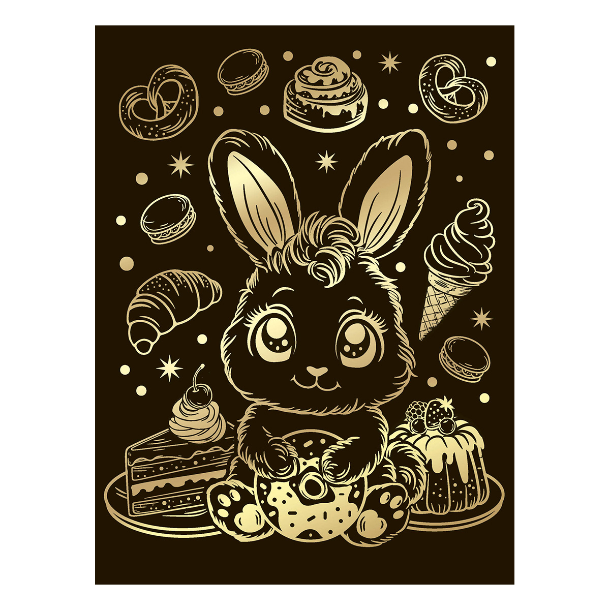 "Lori" Гравюра 21.5 х 27.5 см Зайчик с пончиком золото Гр-768