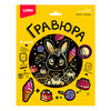 Гравюра представляет собой многослойное панно, покрытое чёрной краской, на которое нанесён контур рисунка. Техника создания гравюры увлекательна и достаточно проста. Необходимо лишь взять штихель – особый скребок, входящий в состав набора, и процарапать рисунок гравюры. Работа с гравюрой развивает усидчивость, внимательность и образное мышление. А чтобы готовая гравюра заиграла по-новому, можно украсить ее цветными стикерами, входящими в набор.