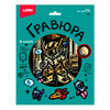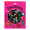 Гравюра представляет собой многослойное панно, покрытое чёрной краской, на которое нанесён контур рисунка. Техника создания гравюры увлекательна и достаточно проста. Необходимо лишь взять штихель – особый скребок, входящий в состав набора, и процарапать рисунок гравюры. Работа с гравюрой развивает усидчивость, внимательность и образное мышление. А чтобы готовая гравюра заиграла по-новому, можно украсить ее цветными стикерами, входящими в набор.