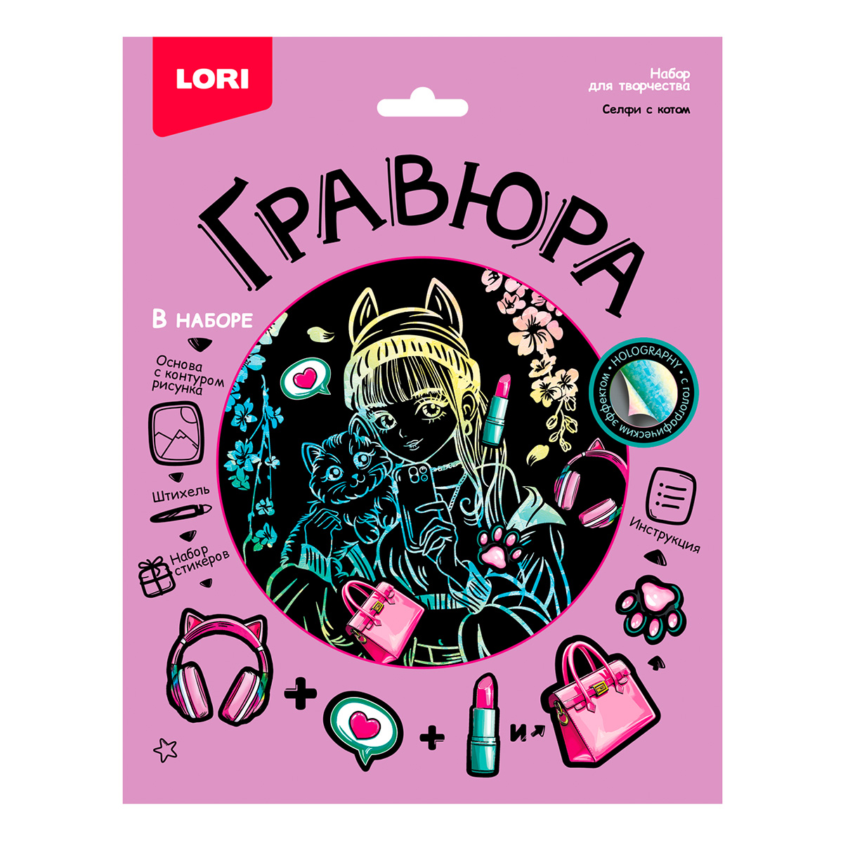 Lori Гравюра 21.5 х 27.5 см Селфи с котом голография Гр-775 Фото 1.