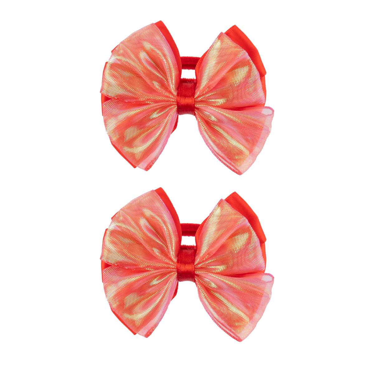 Бант из атласной ленты с блестящей тесьмой смотрится нарядно и стильно, прочная резинка диаметром 3см надежно фиксирует волосы.