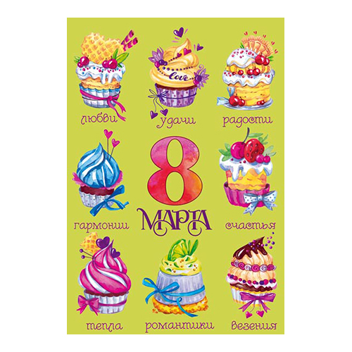 ТЦ Сфера Открытка среднего формата  8 марта! ЦВ-14423 12 х 19 см 00-00015980 Фото 1.
