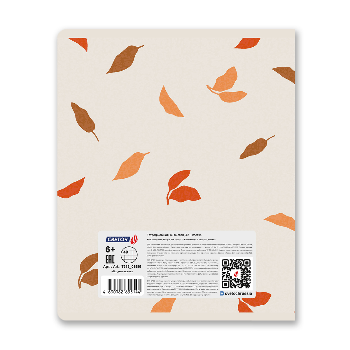 Светоч Т313 Тетрадь ученическая общая, гренирование, A5 48 л. на скобе 60-65 г/кв.м , белизна 100 % клетка 01995 Поздняя осень Фото 6.