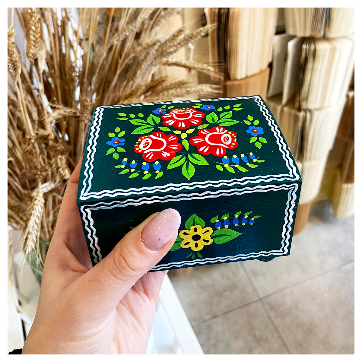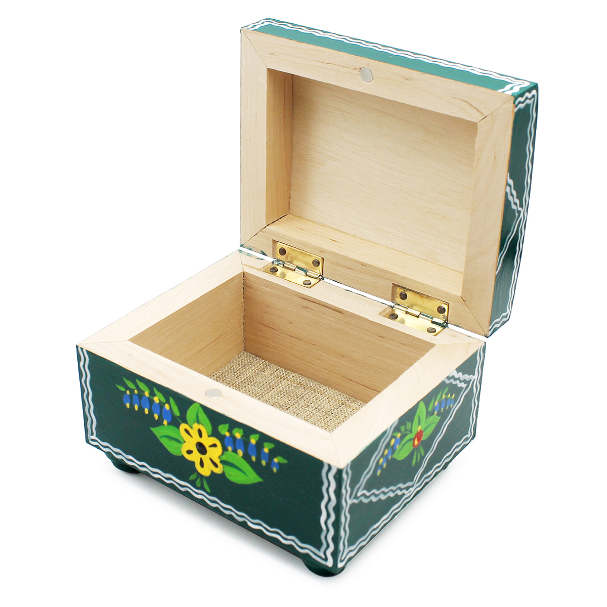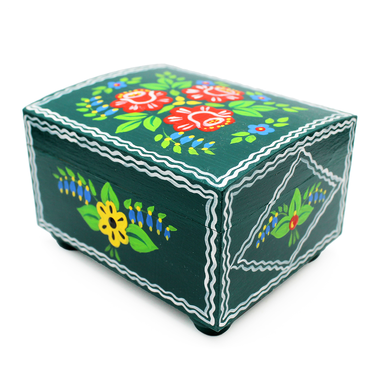 "Брестская фабрика сувениров" kuf01075 Шкатулка с ручной росписью в Оговском стиле 10.5 х 8.5 х 6.5 см с цветами на зелёном фоне