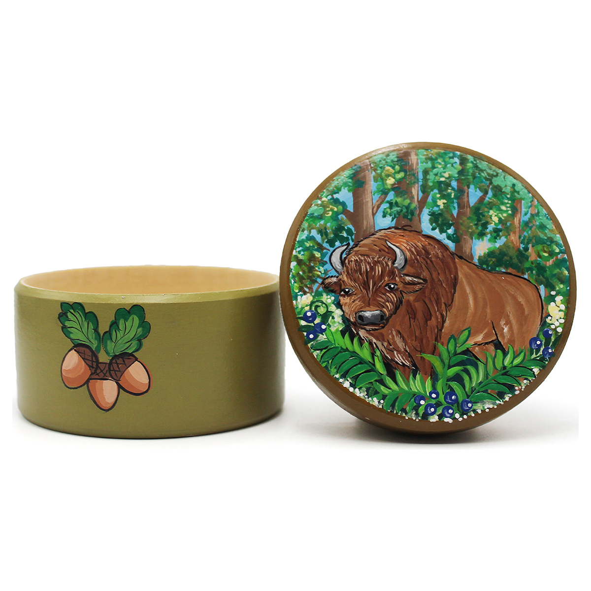 Брестская фабрика сувениров SB20 Шкатулка с ручной росписью «Белорусский зубр» 5 х 7.5 х 5 см Фото 1.