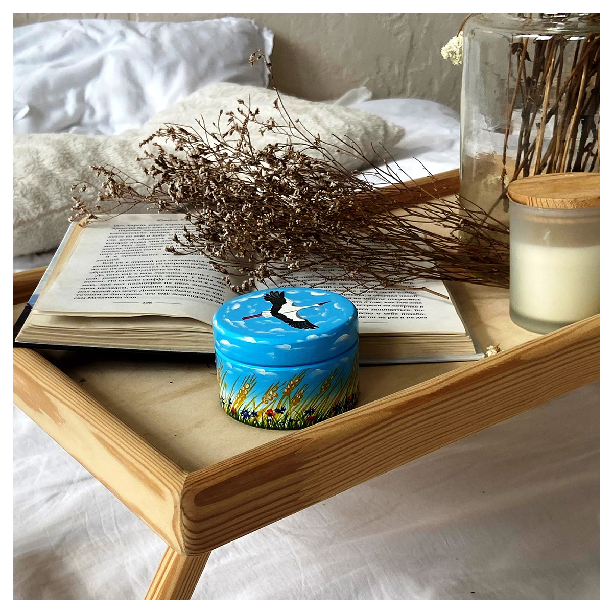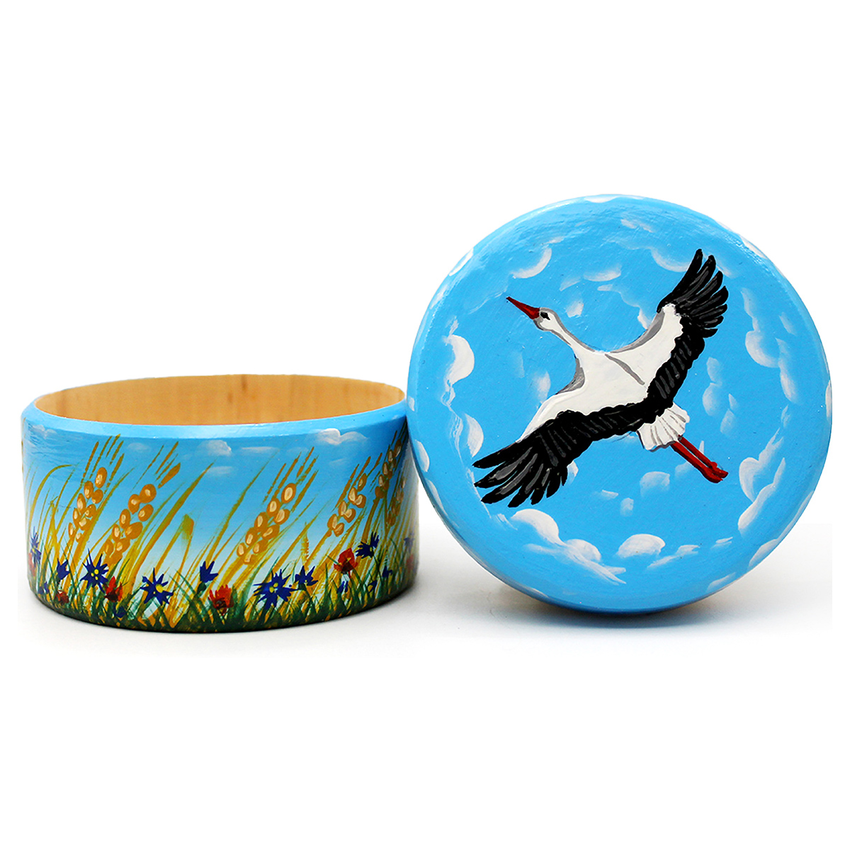 Брестская фабрика сувениров SB037 Шкатулка расписная 5 х 7.5 х 5 см с аистом, васильками и колосками Фото 1.