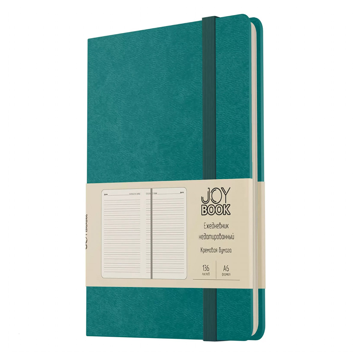 Ежедневники А6. Недатир. 136л. [JOY BOOK]. 7Б. Иск.кожа. Форз.тон. Бум.тонир.70г/м2, 1кр. Скруг.угл, ляссе, резинка, карман задн.форз. Инд.уп Уп./гофр
