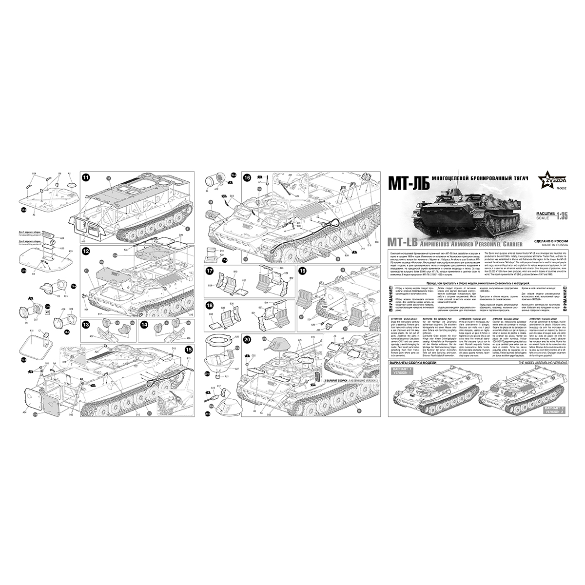 Советский многоцелевой бронированный гусеничный тягач МТ-ЛБ был разработан и запущен в серию в середине 1960-х годов. Изначально он выпускался на ХТЗ, в последствии его выпуск был налажен в Муроме и в Рубцовском филиале УВЗ. В войсках МТ-ЛБ получил прозвище «Мотолыга». Многоцелевой транспортёр используется для транспортировки людей и грузов, в роли артиллерийского тягача и платформы для различного вооружения и оборудования. На гражданской службе применяется в качестве вездехода и тягача. За годы производства выпущено более 55000 штук МТ-ЛБ, которые применяются в десятках стран по всему миру.