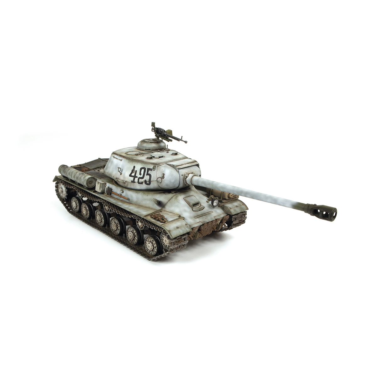 В конце 1943 советские инженеры создали и запустили в серию тяжелый танк ИС-2, разработанный с учетом опыта применения тяжелых танков в первые годы войны. Новый танк получил мощное орудие калибром 122мм, хорошее бронирование и подвижность. В течении всего серийного выпуска танк постоянно модернизировался. Машины, произведенные в период декабря 44- февраля 45 года, получили зенитный пулемет ДШК и установку дымовых шашек на корме. В боях 44-45 годов ИС-2 успешно применялся против тяжелых танков противника, при штурме городов и укрепленных позиций.