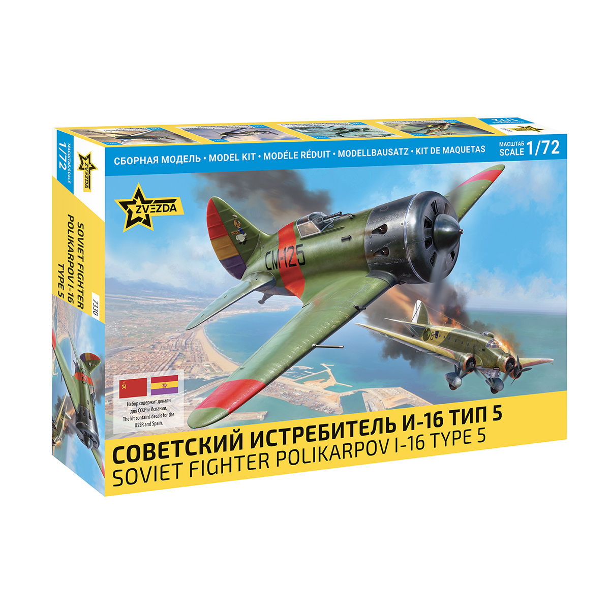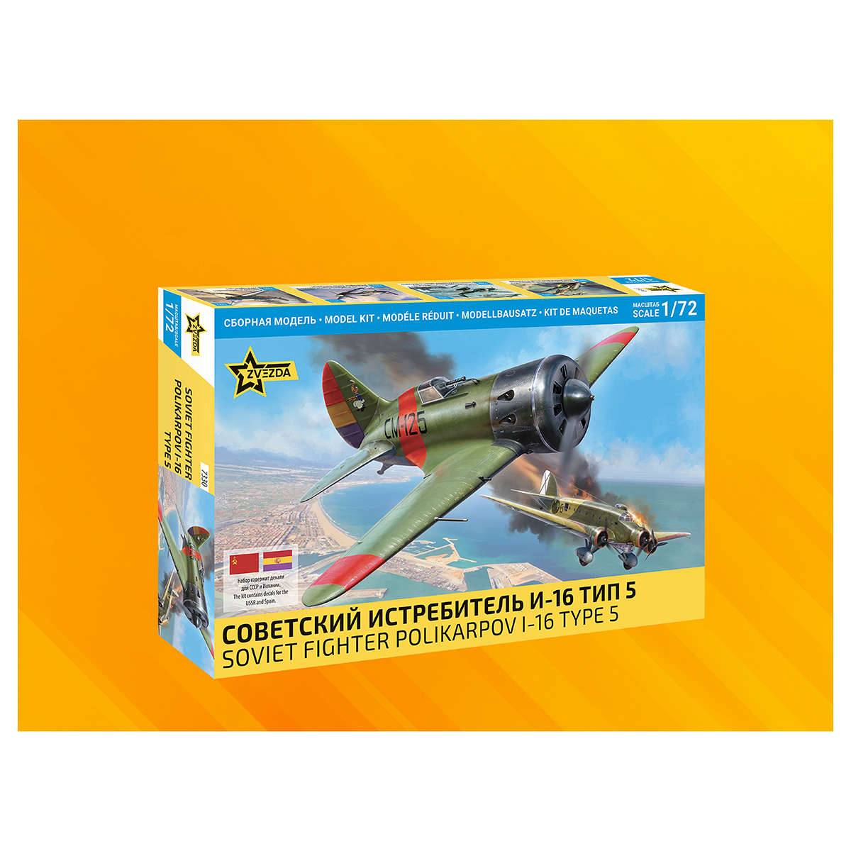 Сборная модель - Советский истребитель И-16. Историческая справка: Истребитель И-16 был разработан КБ Н. И. Поликарпова в 1933-1934 годах. Самолёт принимал участие во многих локальных конфликтах 1930-х годов, таких как гражданская война в Испании и бои на Халхин-Голе. Несмотря на то, что к 1941 году И-16 в значительной степени устарели, они в ряде случаев успешно противостояли более современным немецким истребителям.