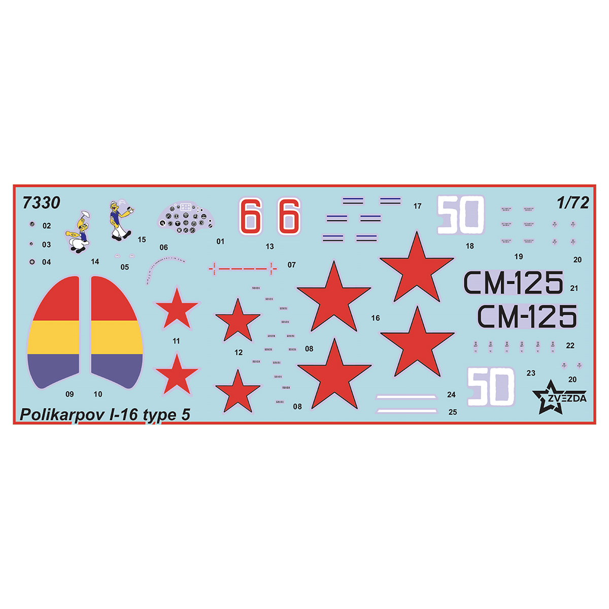 "ZVEZDA" 7330 Советский истребитель И-16 тип 5 1/72 76 элемент.