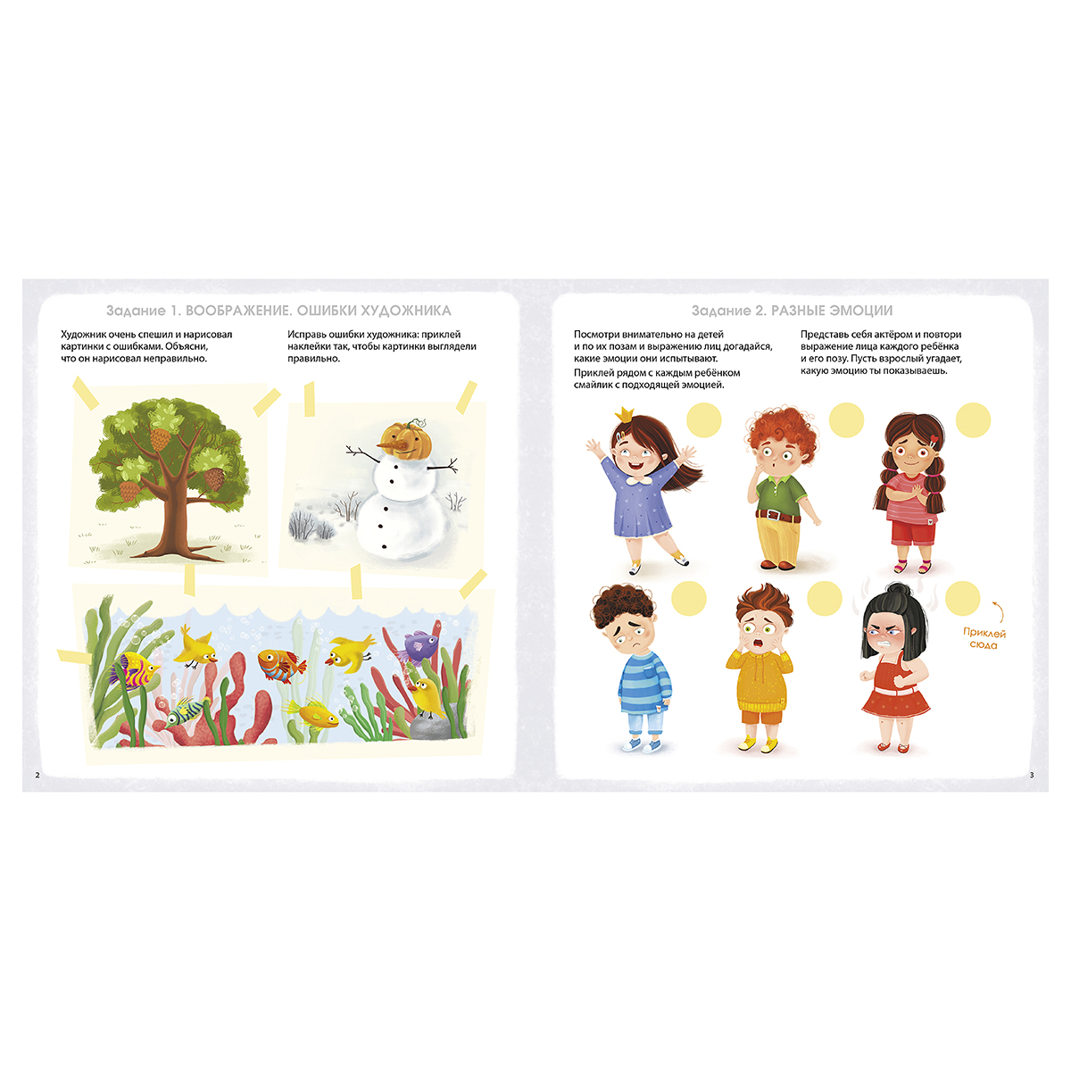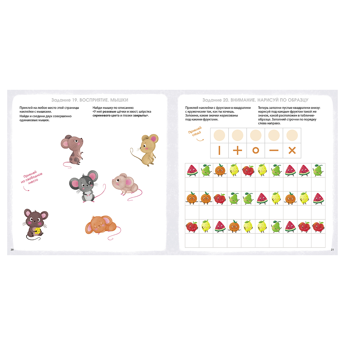 Что найдем внутри: наклейки; задания для развития: - кругозора и речи, активного и пассивного словаря; - мышления, внимания, восприятия, памяти; - воображения и фантазии; - графомоторных навыков и мелкой моторики; - межполушарного взаимодействия; - основ эмоционального интеллекта.