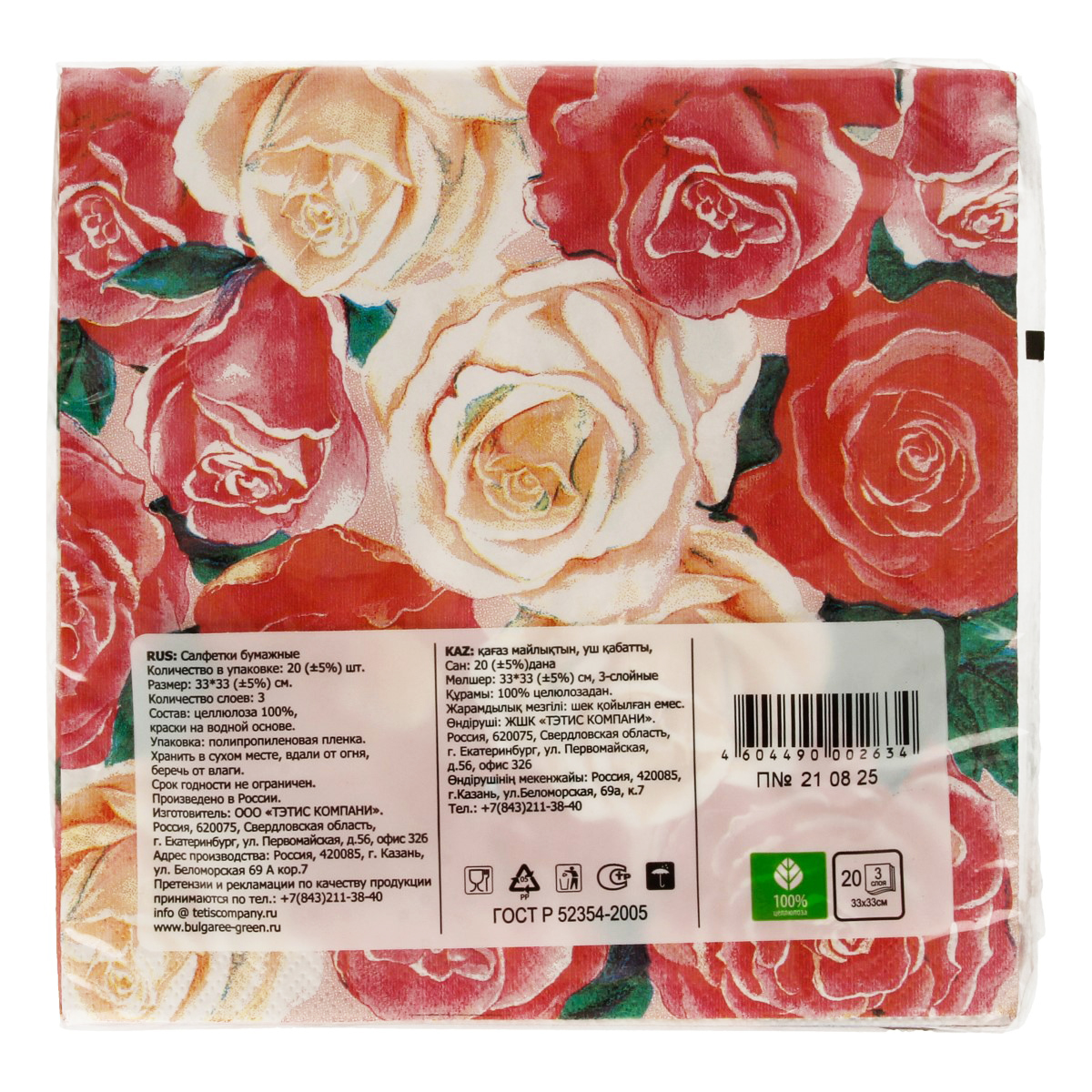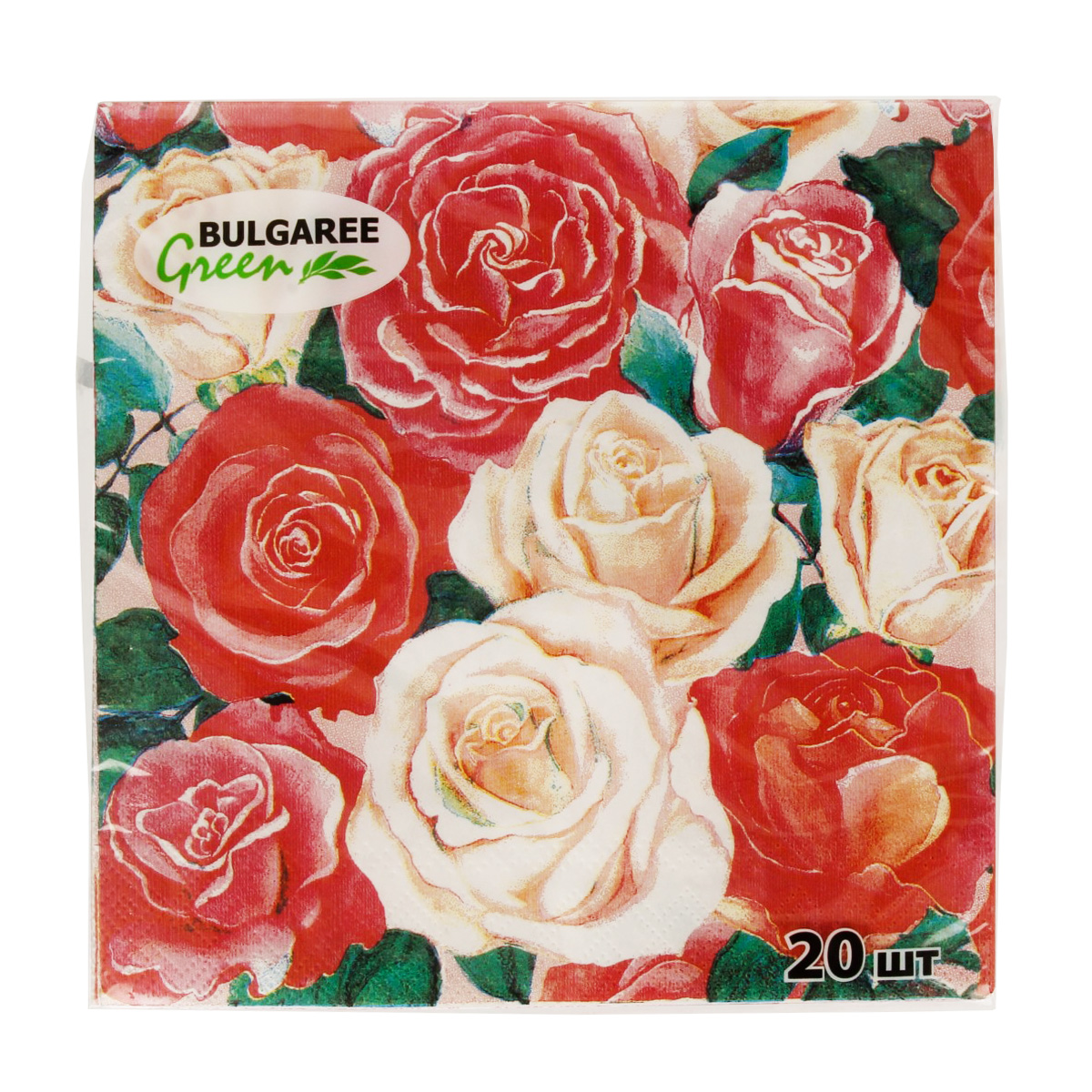 "Bulgaree Green" Салфетки бумажные трехслойные 33х33 см 20 шт. Розовый букет