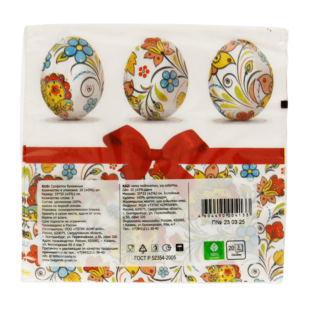 "Bulgaree Green" Салфетки бумажные трехслойные 33х33 см 20 шт. Пасха