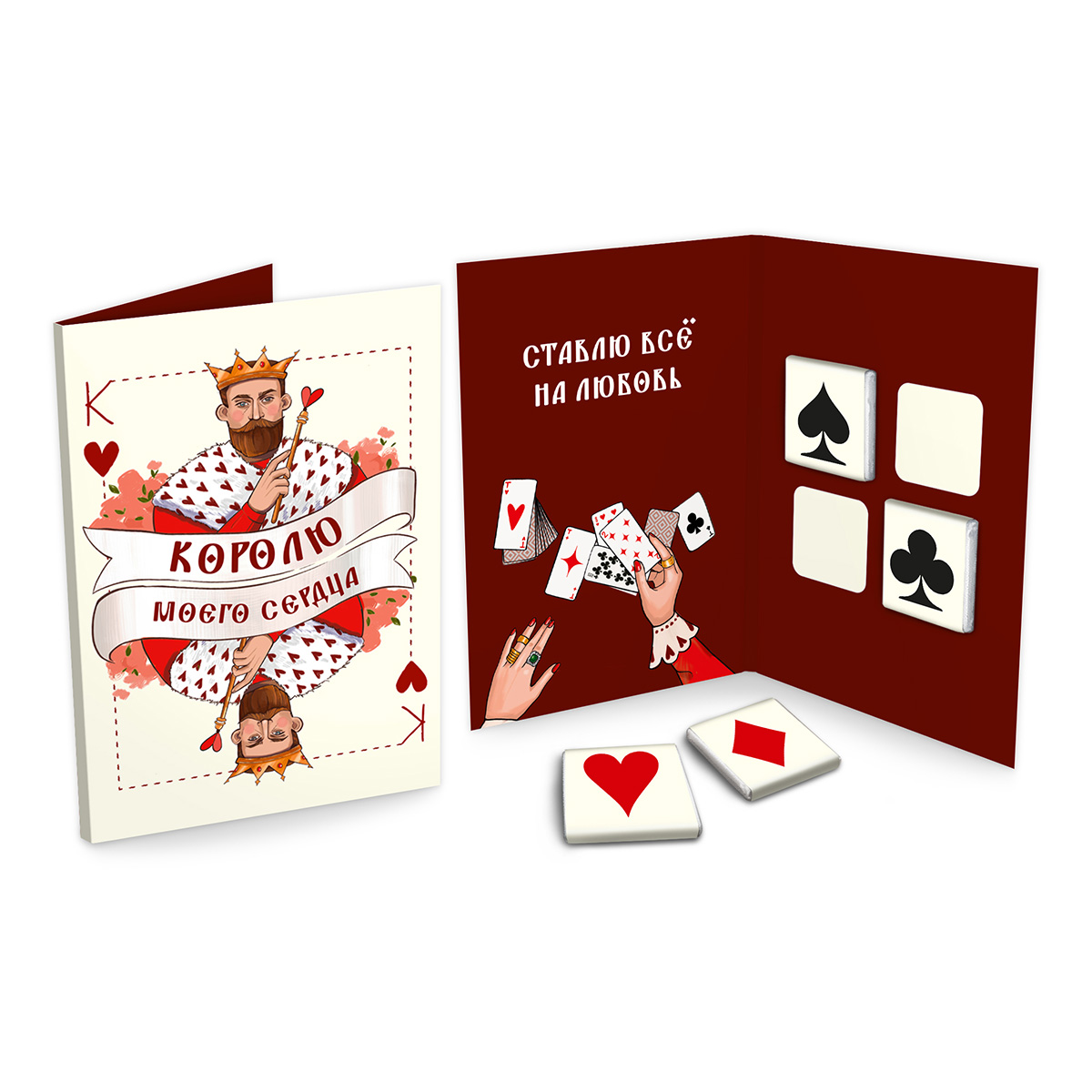 "ChokoCat" Открытка с шоколадными плитками 20 г "КАРТА КОРОЛЮ" ОТК194