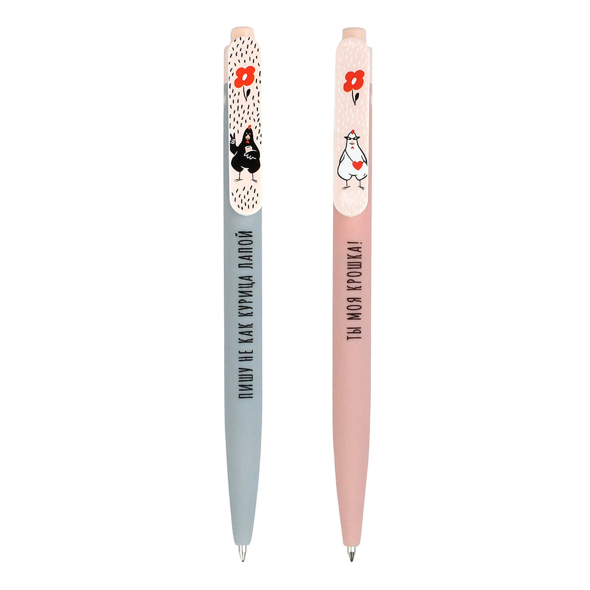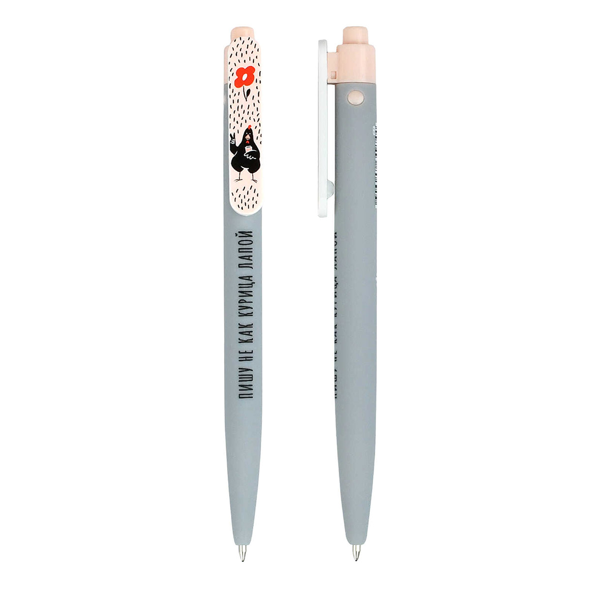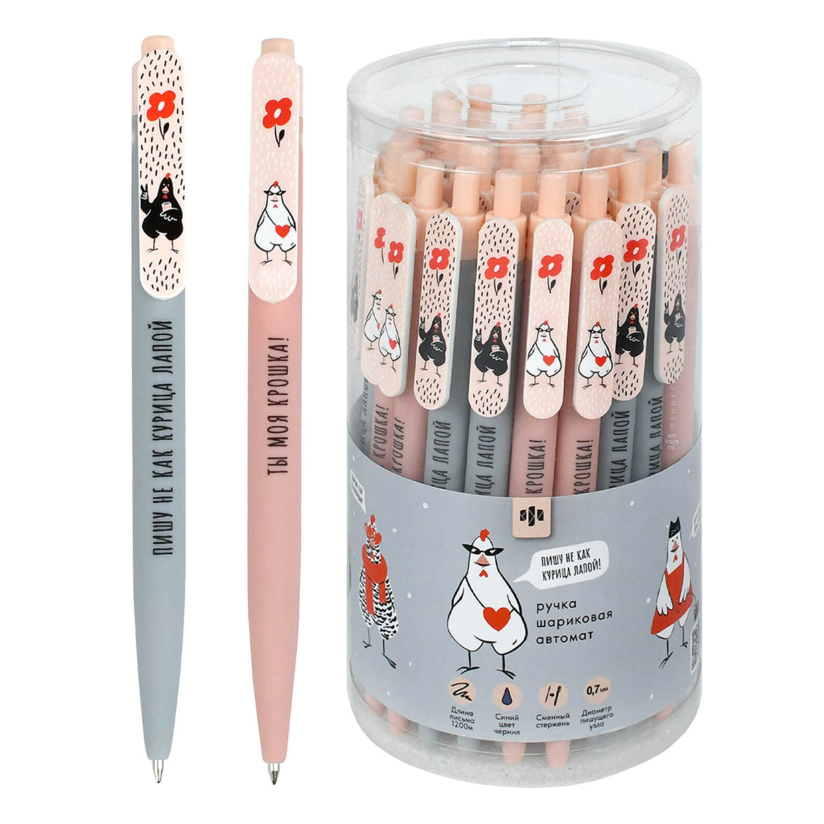Ручка шариковая. СТИЛЬНЫЕ КУРОЧКИ. Тип ручки - автоматическая. Механизм ручки: нажимной. Материал корпуса: АБС-пластик. Форма корпуса: круглая. Покрытие корпуса: софт-тач. Отделка: полноцветный дизайн. Цвет корпуса: розовый, серый. Колпачок: нет. Наличие держателя: нет. Материал клипа: пластик. Форма пишущего узла: конусная. Диаметр пишущего узла: 0,7 мм. Стержень: сменный. Длина письма: 1200 м. Цвет чернил: синий. Пол: для девочек. Отгрузка товара кратна количеству в минимальной упаковке.