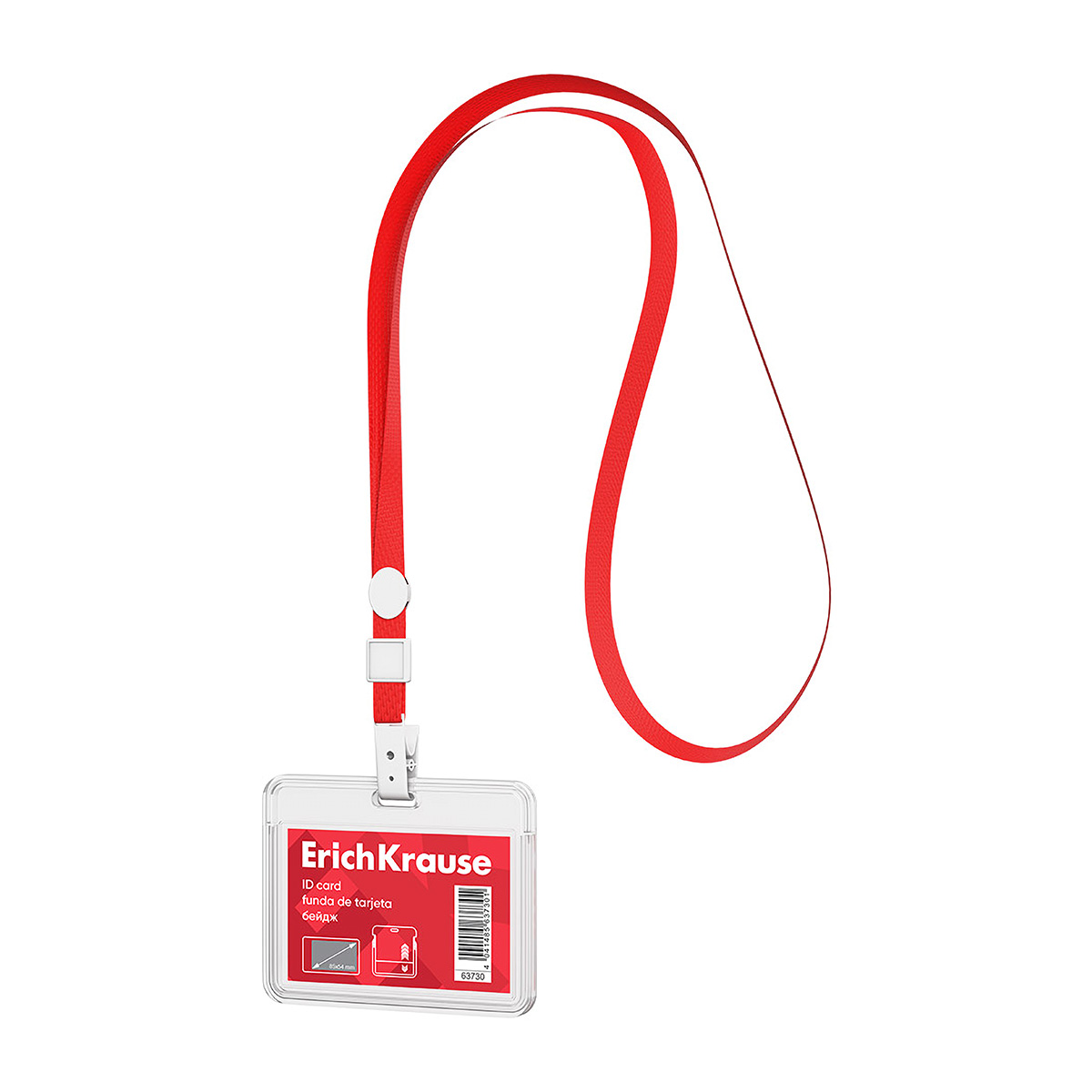 ErichKrause Бейдж слайдер горизонтальный 85х54 мм прозрачный с красной лентой 63730 Фото 1.