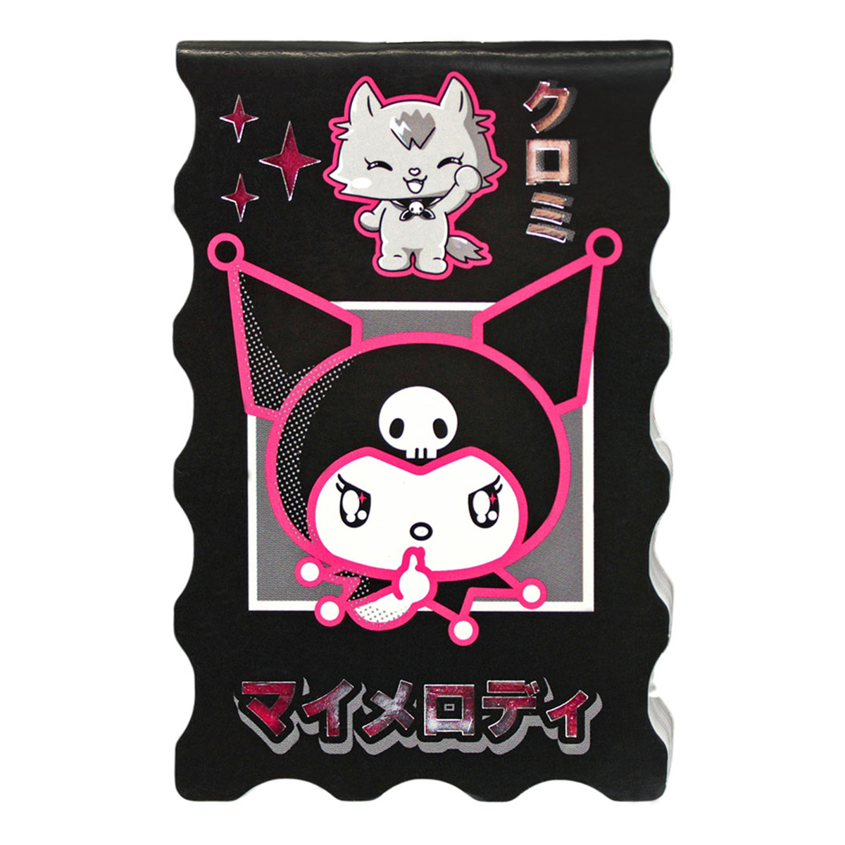 Блокнот фигурный Centrum "Куроми". Мини-формат А7 позволит держать блокнот всегда при себе и делать записи в любой подходящей обстановке. Внутренний блок без линовки и картонная обложка скреплены с помощью металлической скобы. Высокое качество цветопередачи обеспечивает яркое и четкое несение изображения. Тиснение серебряной фольгой, эффектно подчеркивает дизайн.  Объем – 40 листов.