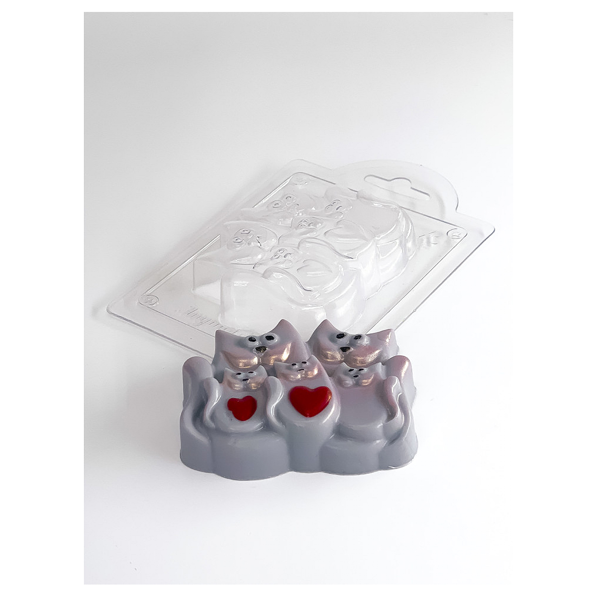 AnyMolds Форма пластиковая для мыла ПЭТ Семья котиков Фото 1.