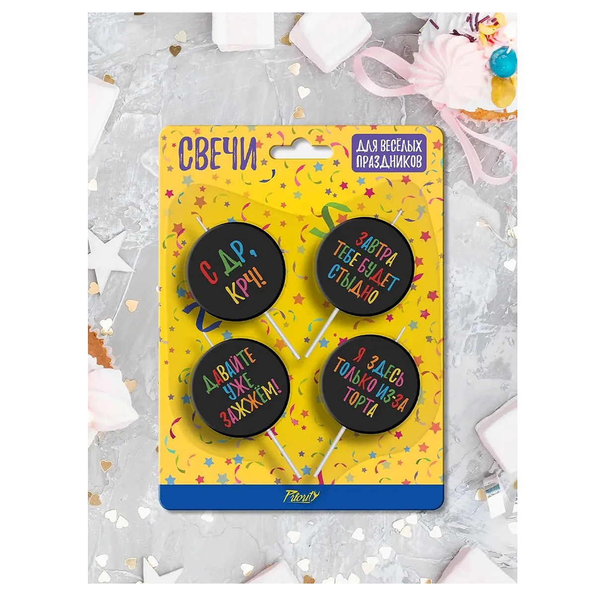 "Priority" Набор свечей для торта 4 шт. С ДР, КРЧ! СВ-ФРЧ/01