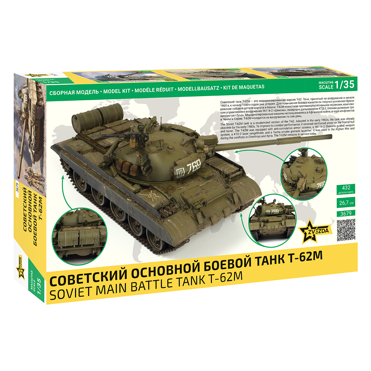 Советский танк Т-62М – это модернизированная версия Т-62. Танк, принятый на вооружение в начале 1960-х, к началу 1980-х годов уже устарел. Для повышения боевых качеств он получил усиленное бронирование лобовой детали корпуса и башни. Т-62М оснастили противокумулятивными экранами, комплексом управляемого вооружения 9К116-2 «Шексна», лазерным дальномером КТД-2, блоком дымовых гранатометов «Туча». Модернизированные машины использовались в Афганской войне, в ходе конфликтов в Чечне и Сирии. Т-62М находится на вооружении по сей день.